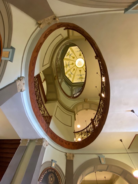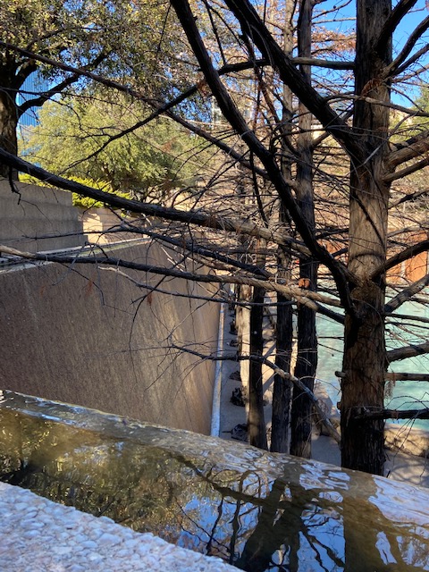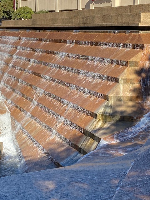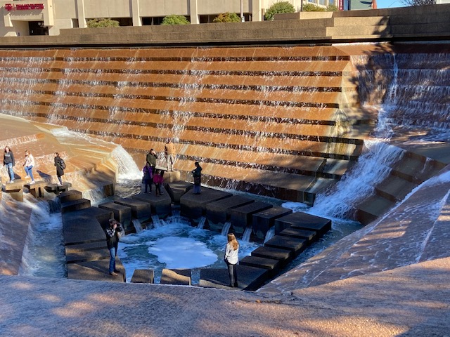 We spent December 30, 2019, in Fort Worth. In the morning we enjoyed the downtown with its very small town feel. The Sid Richardson Museum has wonderful collections of Frederic Remington paintings and sculptures, and also paintings of a Remington contemporary named Charles M. Russell, which Judy liked even better than the Remingtons. There is the old west Tarrant County Courthouse and the Fort Worth Water Gardens. The latter are extensive and impressive with flowing water, heavy and light, and reflecting surfaces everywhere.