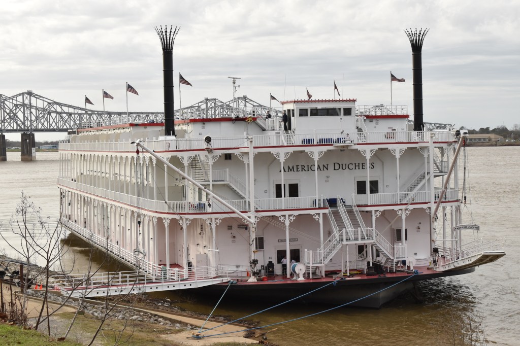We reached the bottom of the hill for a close up view of the river boat and stopped for a late lunch at the Magnolia Grill. The waitstaff there told us about occasional shut downs when the river is high and we saw examples of the sandbags used during flood seasons.