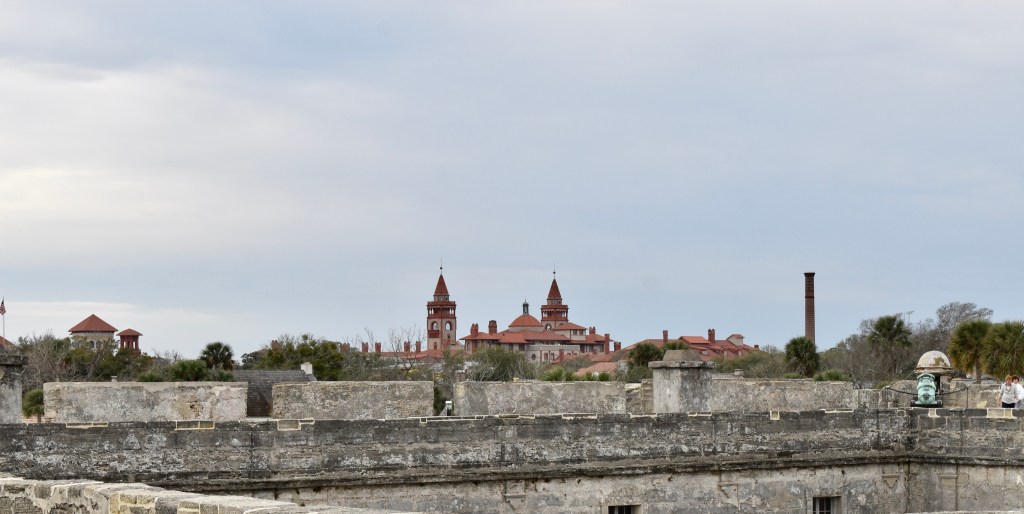From St Simon’s Island we headed south to another saint – St Augustine, and Compass RV Resort. The next morning, January 29, we decided to walk around the town rather than take the trolley – it is a compact downtown. Our first stop was Castillo de San Marcos, which was built in 1672 by the Spanish, then traded to the British in 1763 in exchange for La Habana, Cuba. The Peace of Paris agreement returned Florida to Spain in 1783. Finally, in 1821, Spain ceded Florida to the USA.