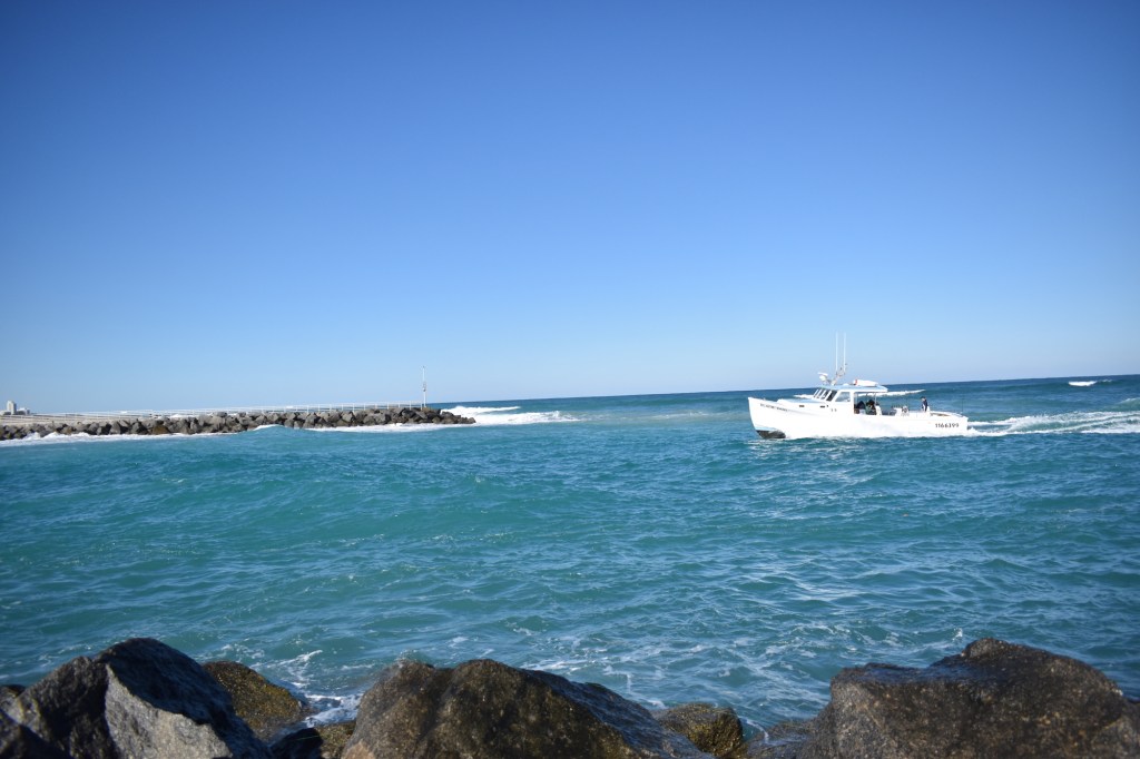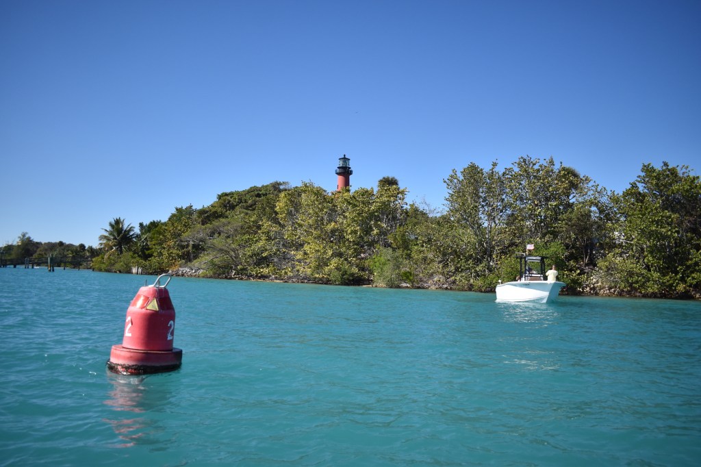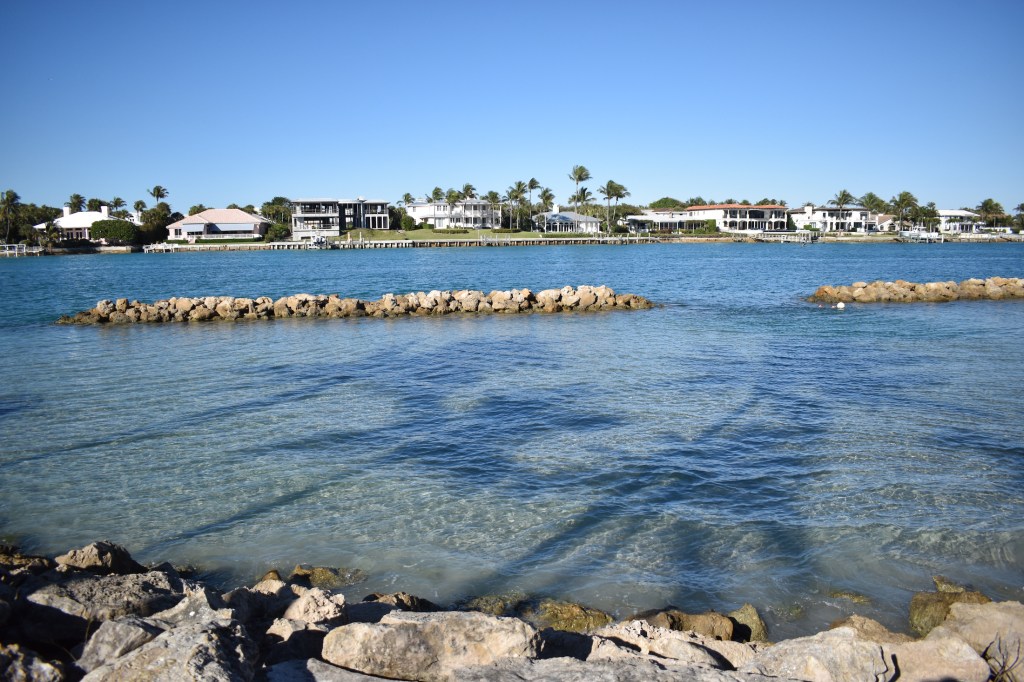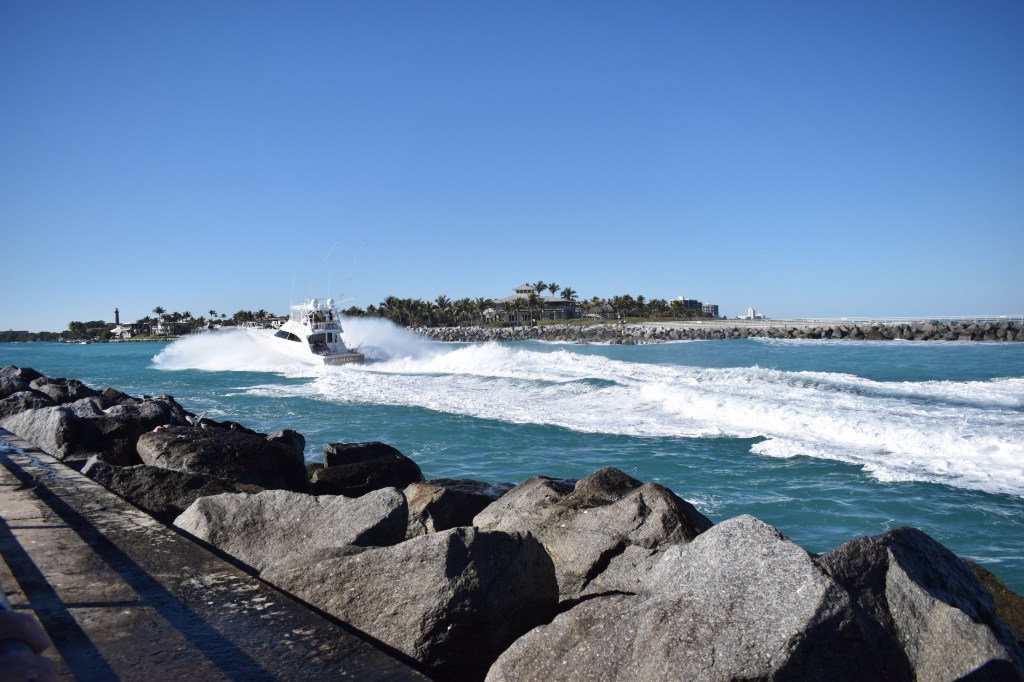 The inlet from the Atlantic Ocean to Jupiter Sound is narrow and the current runs hard. We walked along where the palms made interesting shadows.