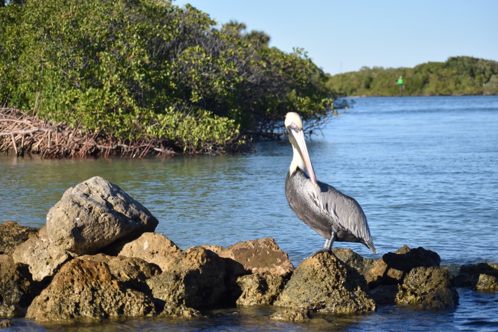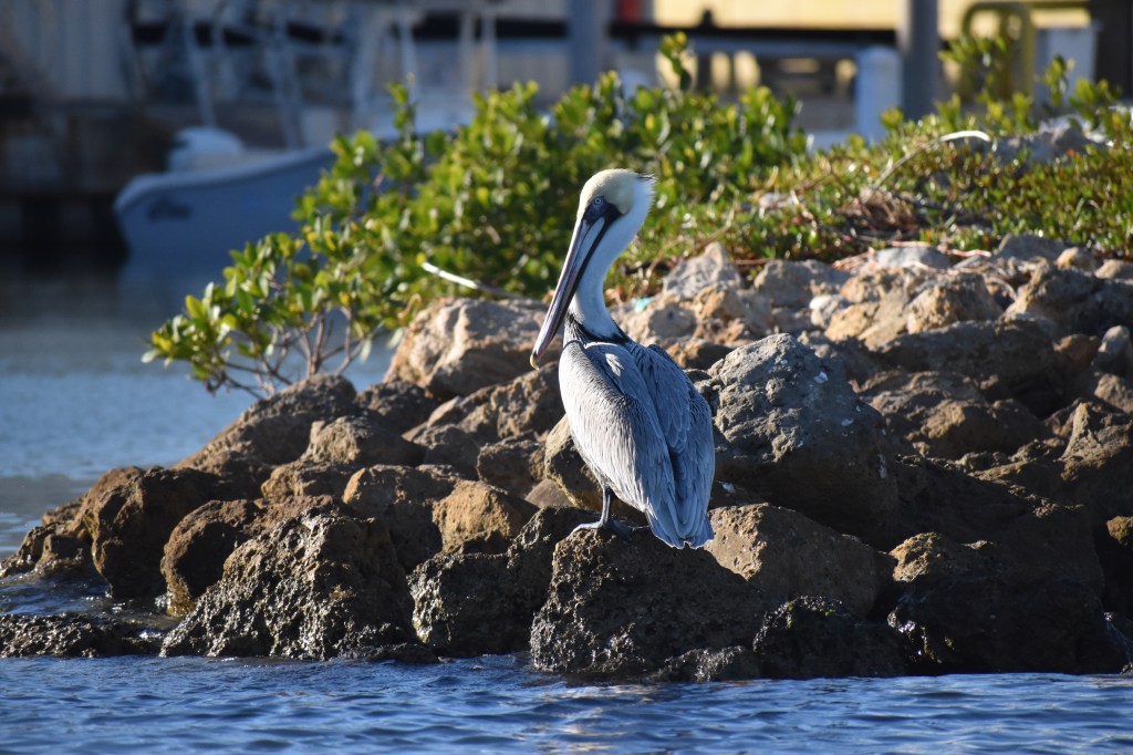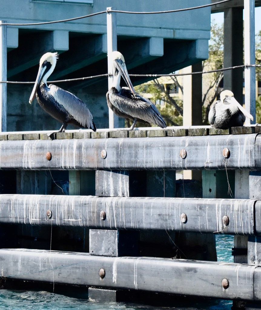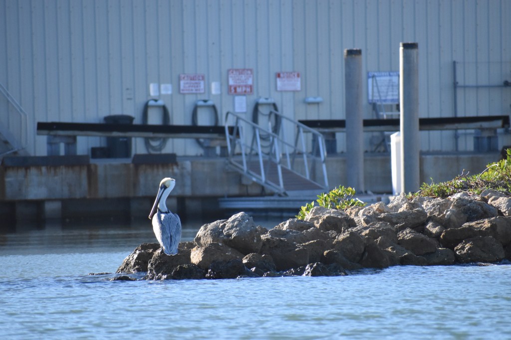 Some actually pose very patiently. This pelican was standing guard at the entrance to the marina.