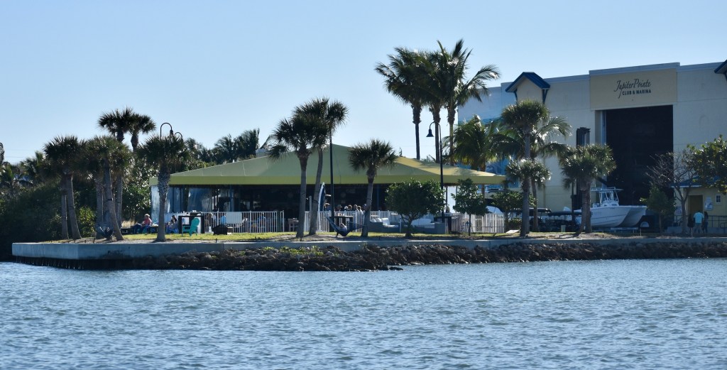 On February 1st and 2nd we stayed at the West Jupiter RV Resort. We had arranged to spend Super Bowl Sunday with our friends Joan and Bruce in Tequesta, and they entertained us in fine style! First, we had lunch on the waterfront at the Jupiter Pointe Club & Marina where they store their boat.