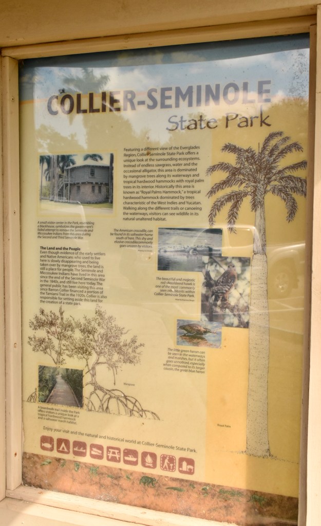 During our stay at Bonita Springs we visited Collier-Seminole State Park. We were not able to get a campsite at this park – it would have been a fun place to stay.
