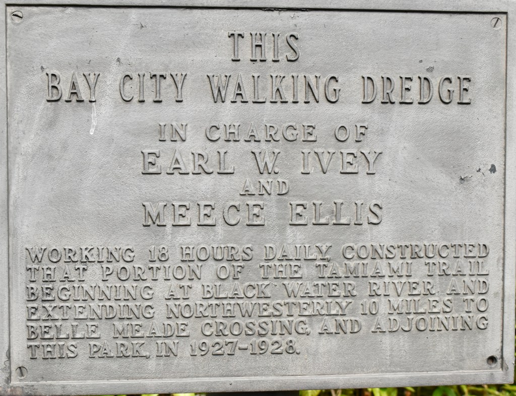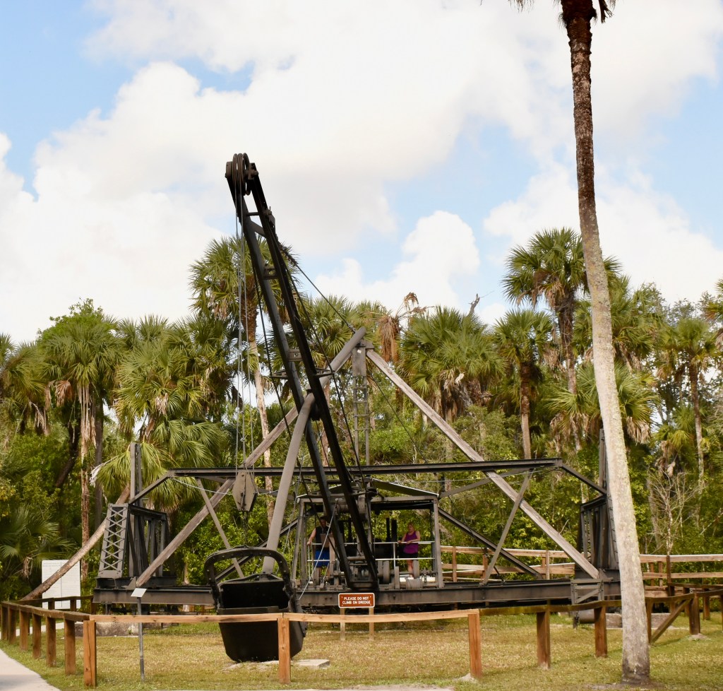 A fascinating display at the Park is the Bay City Walking Dredge that helped build the Tamiami Highway across Florida, an important transportation link between – you guessed it – Tampa and Miami. This gigantic machine cleared the thick layer of muck and pick up limestone that was used to form the roadbed. It used a giant bucket to dig and also to move itself along.