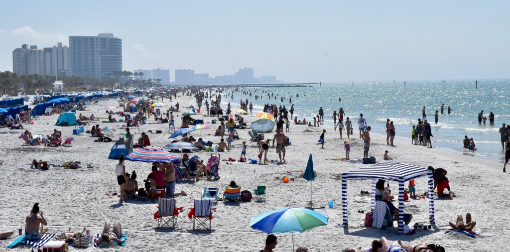 Clearwater Beach in February; it was less populated than the photos we have seen of spring break crowds.