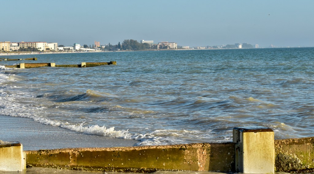 Another sign we saw in Indian Rocks Beach on the trolley tour: It’s Your Day Cafe. Before returning to the campground we walked on Madeira Beach in the late afternoon. The views were pretty and the birds were busy getting dinner.