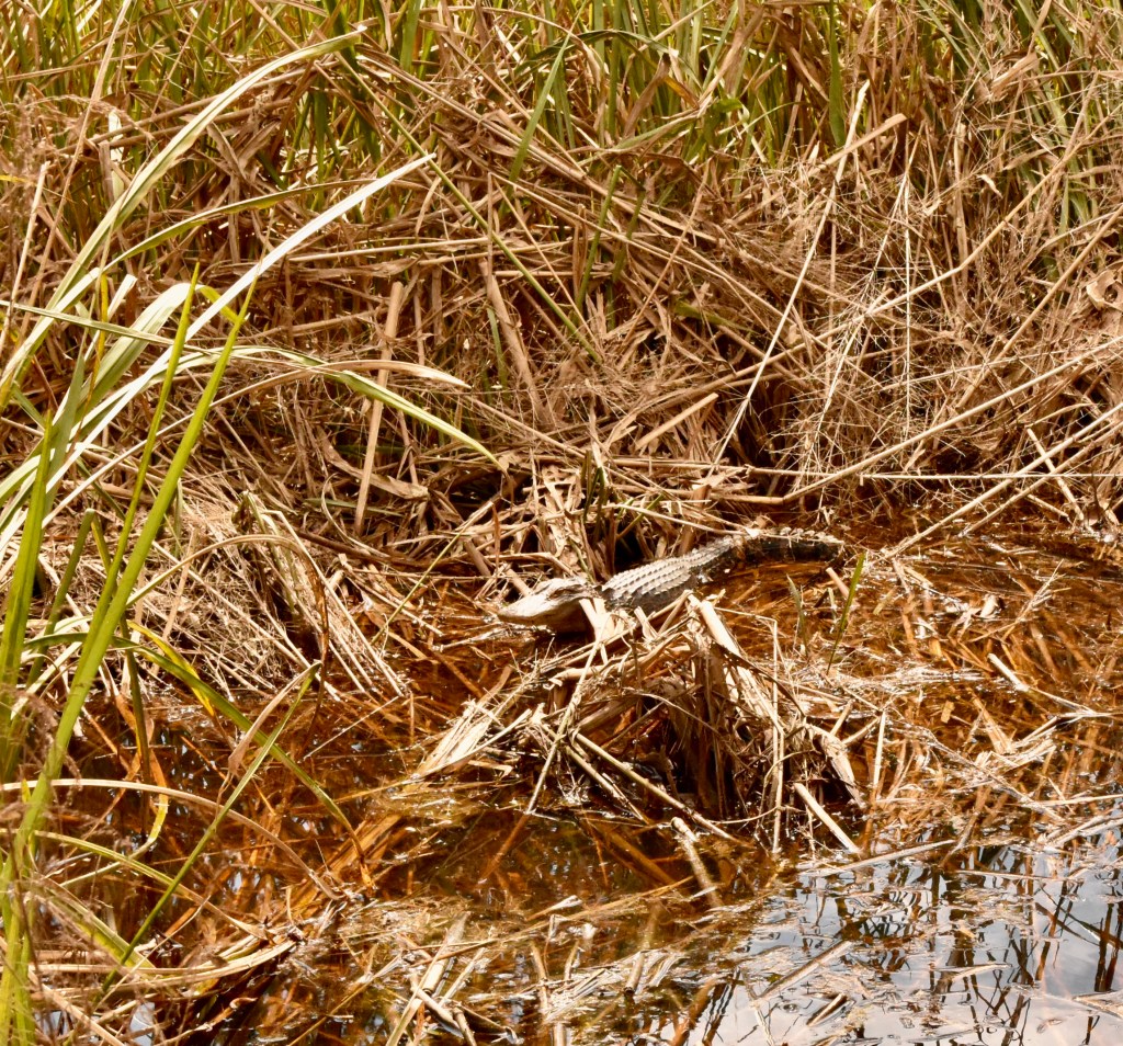 The wood structure at the left is part of a very complex irrigation system for the rice fields. The little alligator above was hanging out nearby.