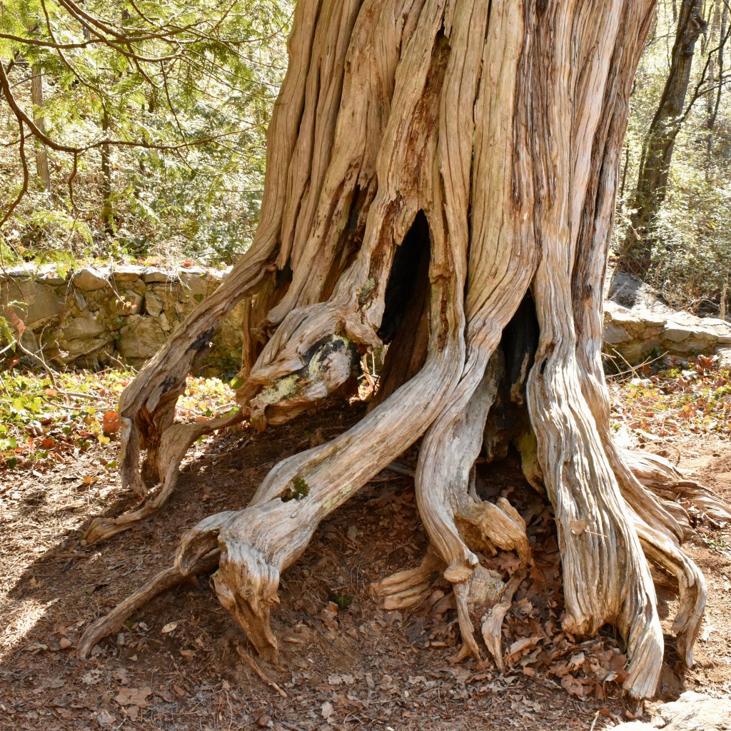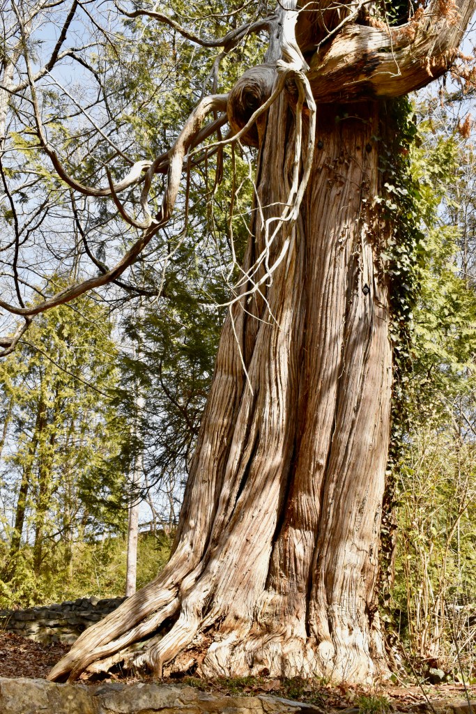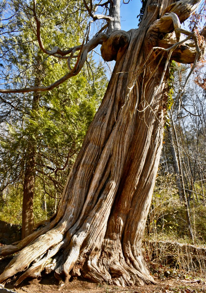 From park signage:”Before dying in 1980, this more than 1600 year old specimen of the arbor vitae tree was the oldest and largest known in the world. Its diameter measures 56 inches. Depending on climatic conditions that determine its growth rate, the arbor vitae increases in diameter about one inch every thirty years.”
