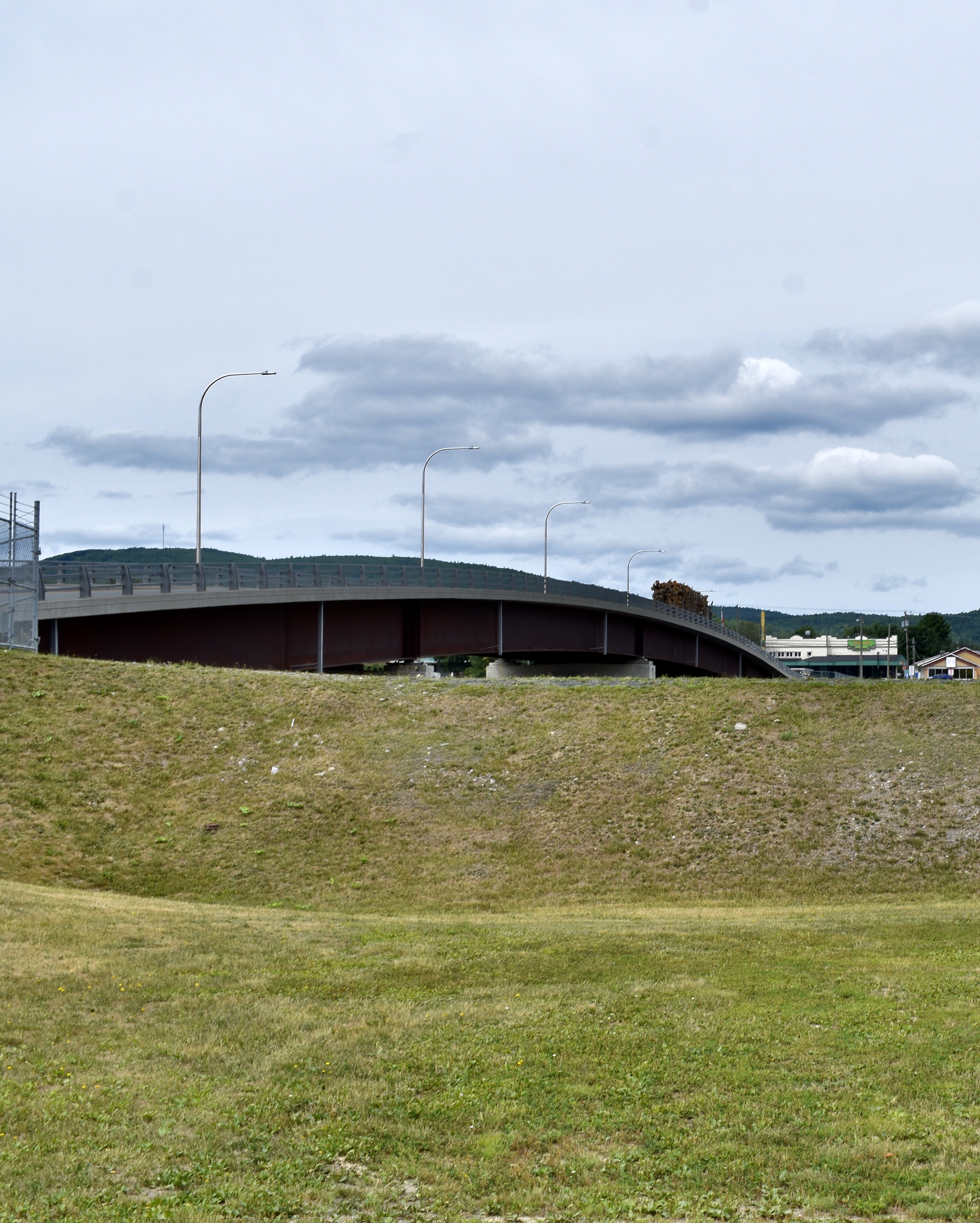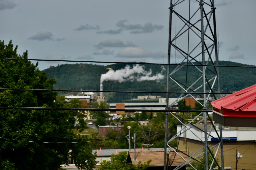 Madawaska, Maine and Edmundston, New Brunswick are linked by a mile-long pressure pipeline that carries pulp created in the Twin Rivers plant in Edmundston across the border to the paper mill in Madawaska. It looks like one big town. Most of the structures in the following photos are in Canada.