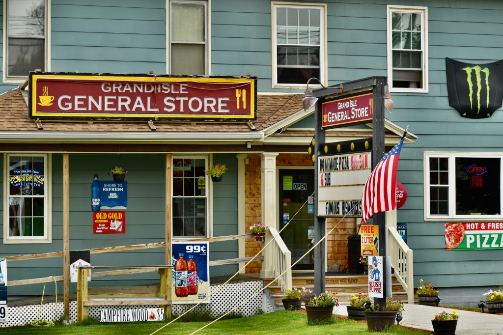 On our way back to St. Agatha we drove through Pelletier Island in Long Lake, connected by a long causeway to the shore.