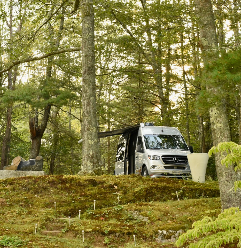 We started this trip in Boothbay, mooch-camping at our friend Chip’s lake house. There are interesting sculptures in beautiful scenery. It is great swimming, although it was a little daunting to have the Canadian geese sharing the lake.