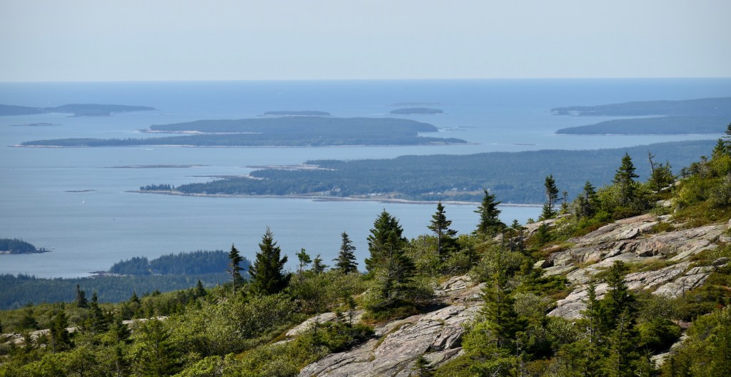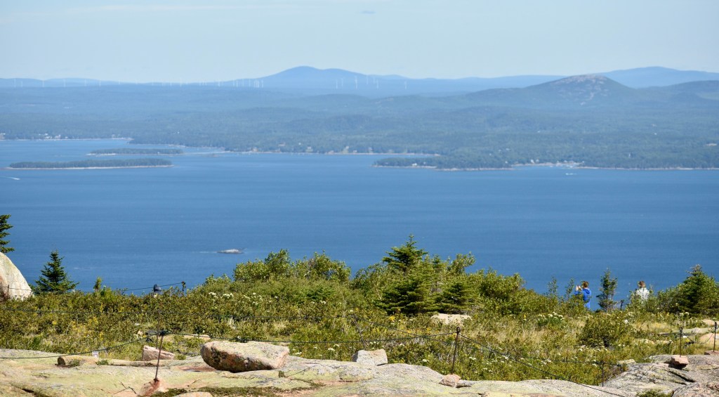 We spent a day driving the Acadia Loop Road. We hoped to hike at the Bubbles or elsewhere, but there was a large amount of traffic, and parking was scarce in the most popular places. Unfortunately, the explorer buses did not run in 2020. Our first stop was the summit of Mount Cadillac with its spectacular views.