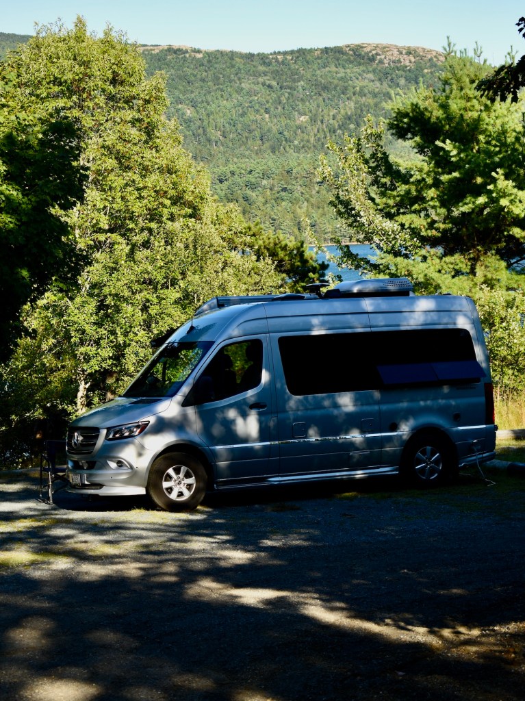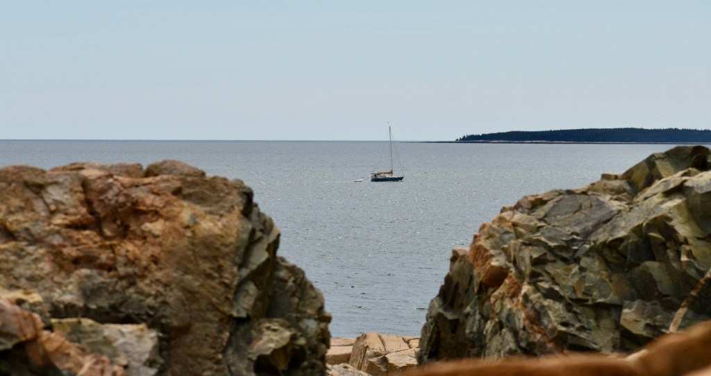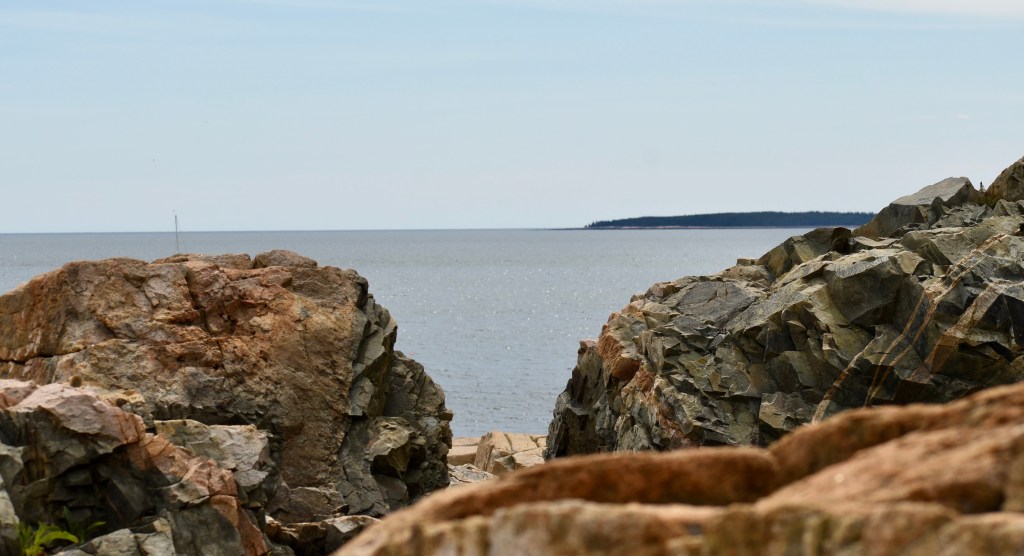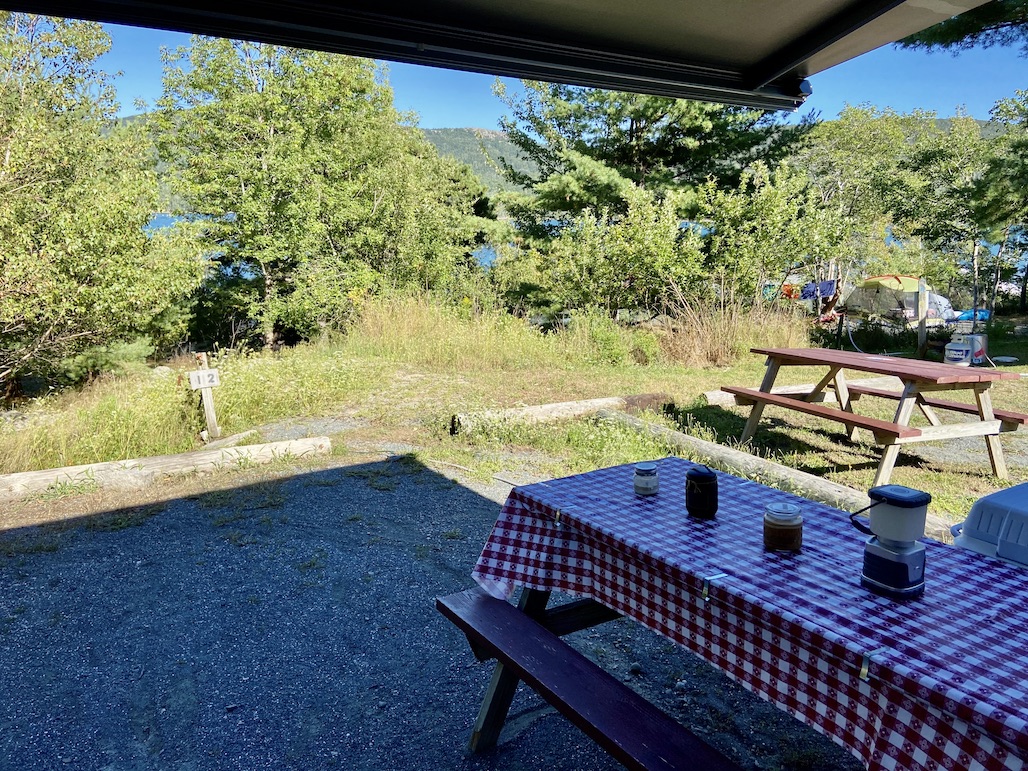 Our campground was on the west side of Somes Sound, the fjord that splits Mount Desert Island. Our campsite “with water and mountain views” was not the greatest, but we didn’t spend too much time there. As I told someone upon our arrival, “We have a peek a boo view of Somes Sound and the mountains. Surrounded by babies and dogs from Massachusetts.” All very friendly.