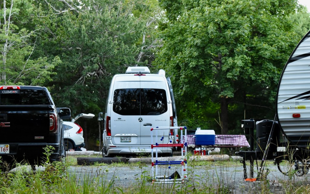Back at the campground our crowded site was evident, but the sunset light was nice under the rising moon.