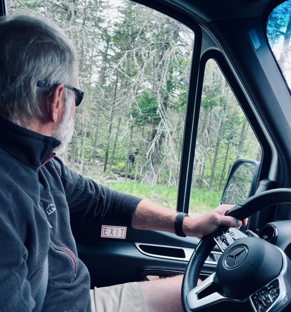 Doug, Judy, and Lucee the dog set out for the west from home on June 1, 2022. Ready or not, off we go. Readers and followers, please be patient as I get the blog stream set after a year away! Our plan is to meet our good camping buddies Cheryl and Dee in Alberta, then head to Alaska! We traveled up Route 26 in Maine and just past Grafton Notch in Maine we saw a young moose! A surprise in the middle of the day.