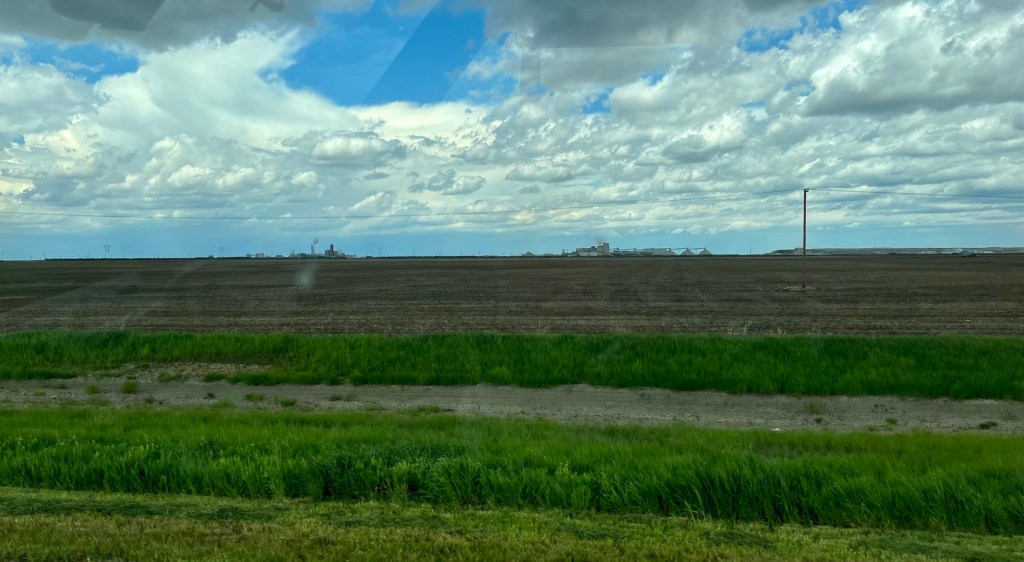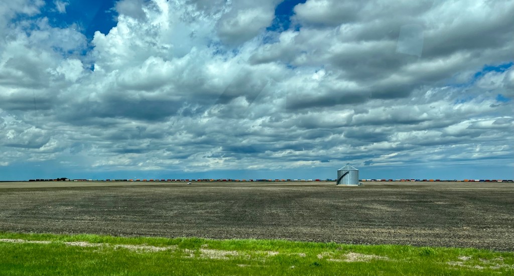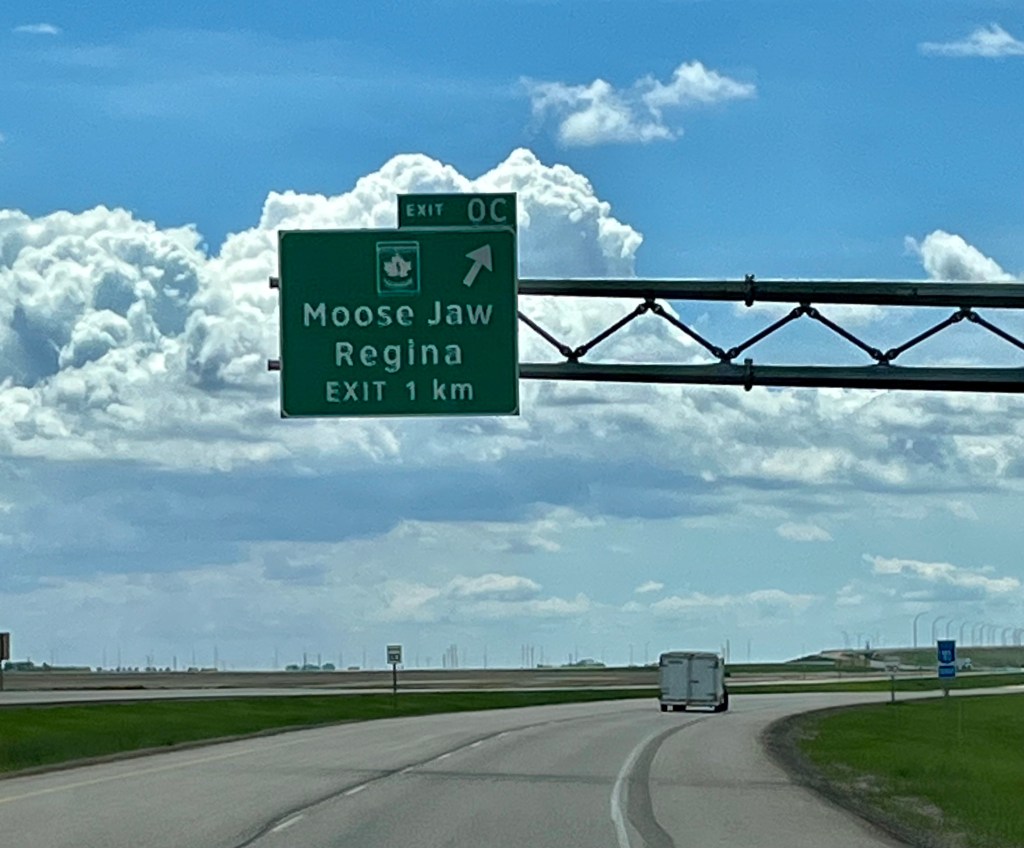 We continued west on to Moose Jaw – with a name like that, there must be good photo opportunities. We were racing against the train going through Pense and Belle Plaine.