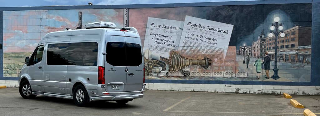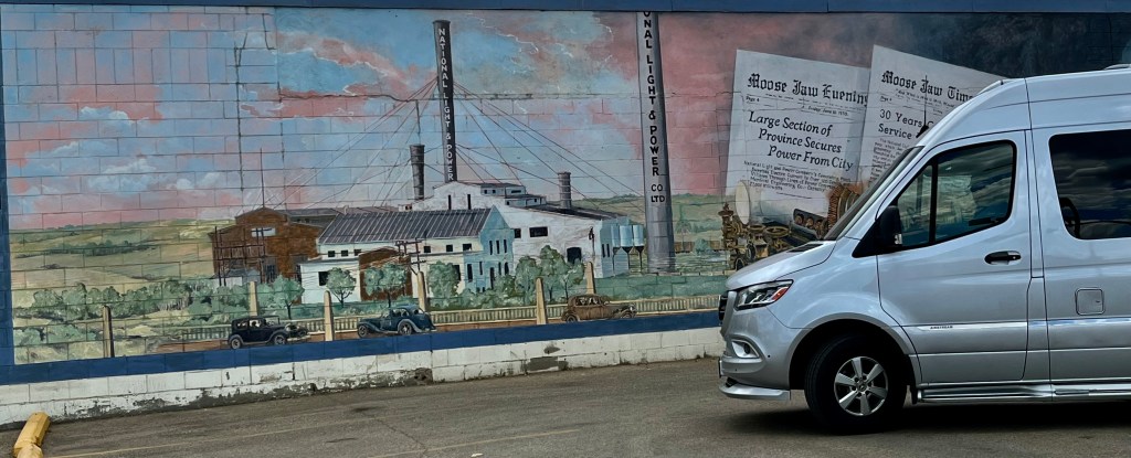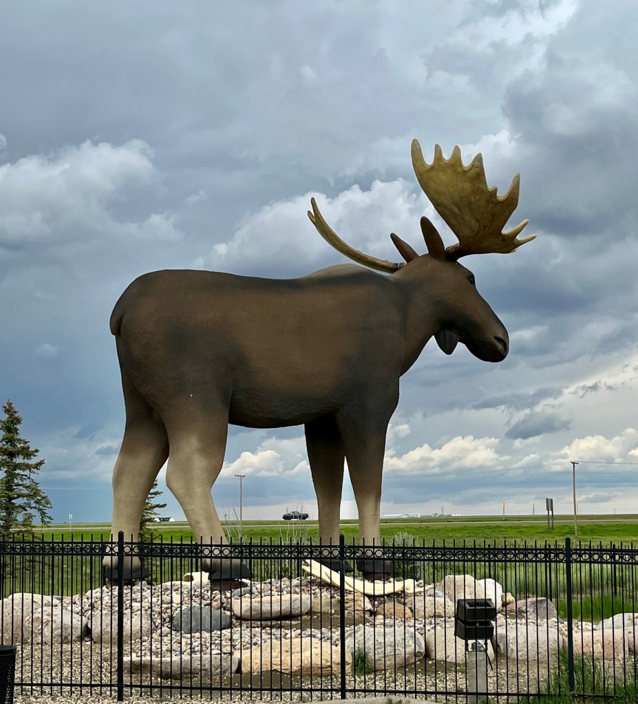 It wasn’t so easy to find a good photo in Moose Jaw, but the mural is good, and the moose finally showed up!
