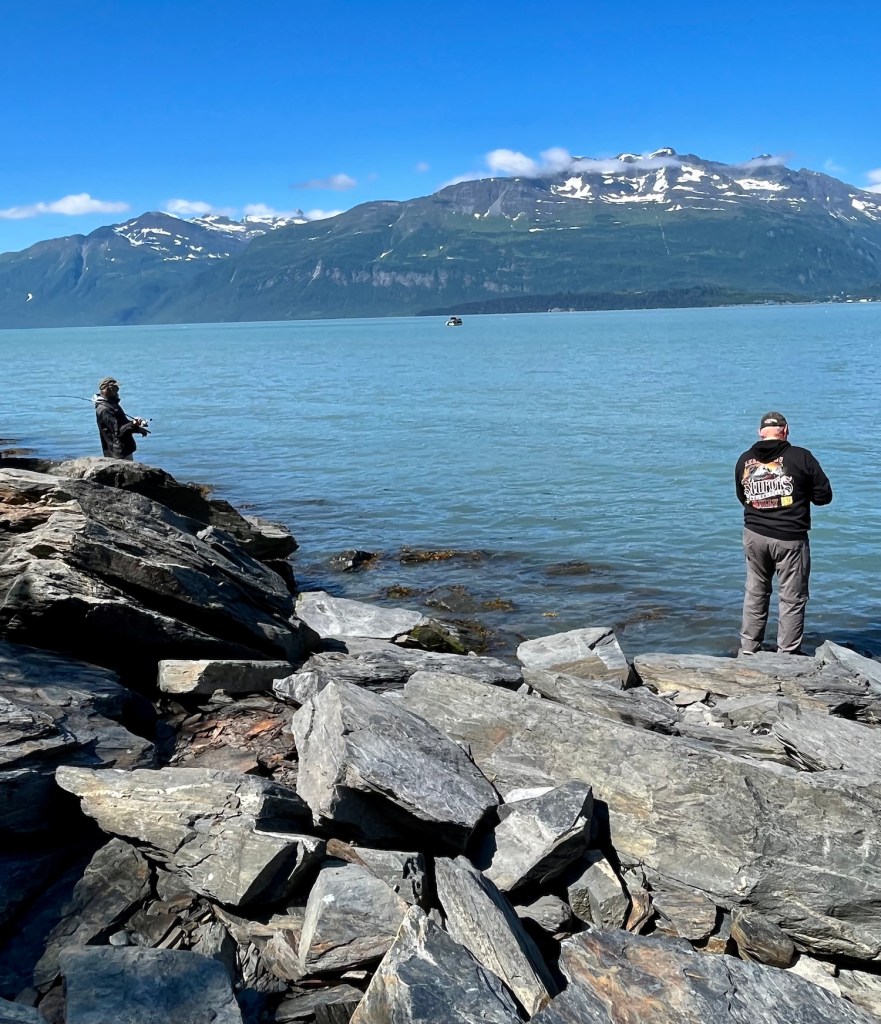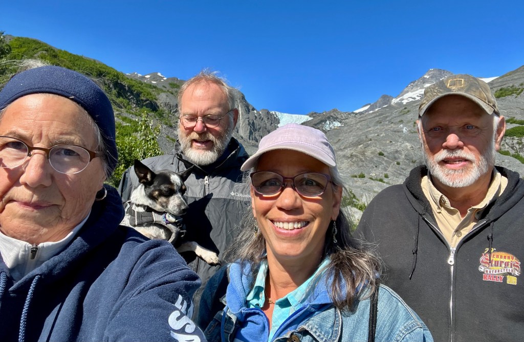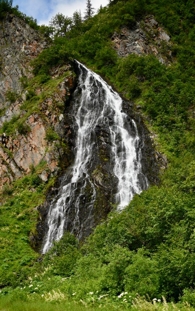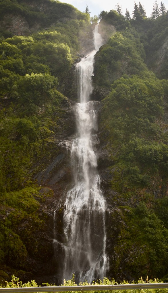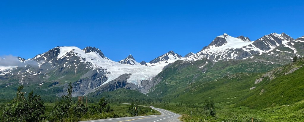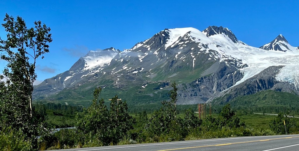 On Friday, July 1, we drove down the Richardson Highway from Glennallen to Valdez, Alaska. From the highway we could occasionally see the Alaska Pipeline that runs 800 miles from Prudhoe Bay to Valdez, completed in 1977, and the Worthington Glacier.