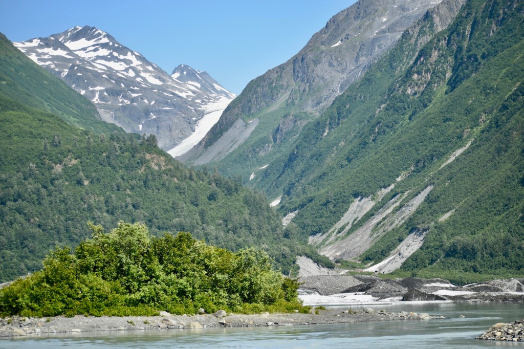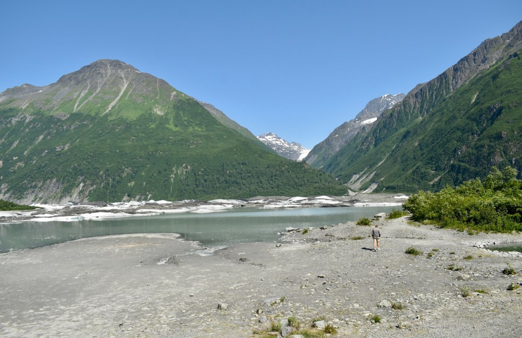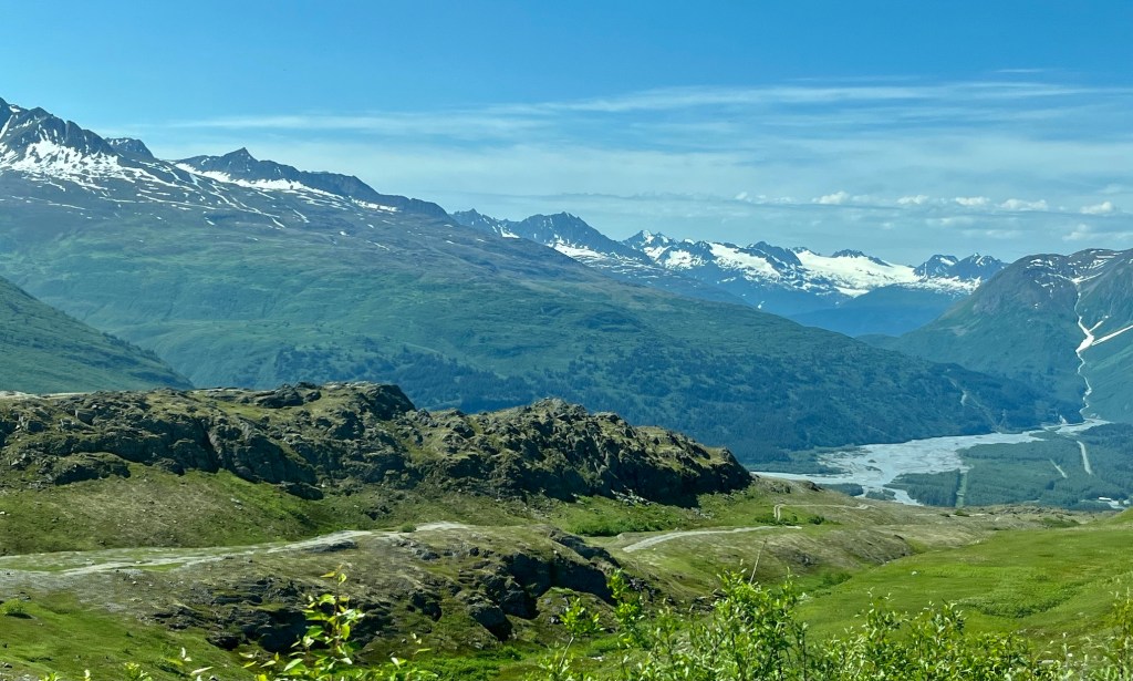 Thompson Pass on Richardson Highway. The poles over the highway are guidance to the snowplows in winter weather. It’s not uncommon for Valdez to be isolated by avalanches here and farther down the canyon.Blueberry Lake