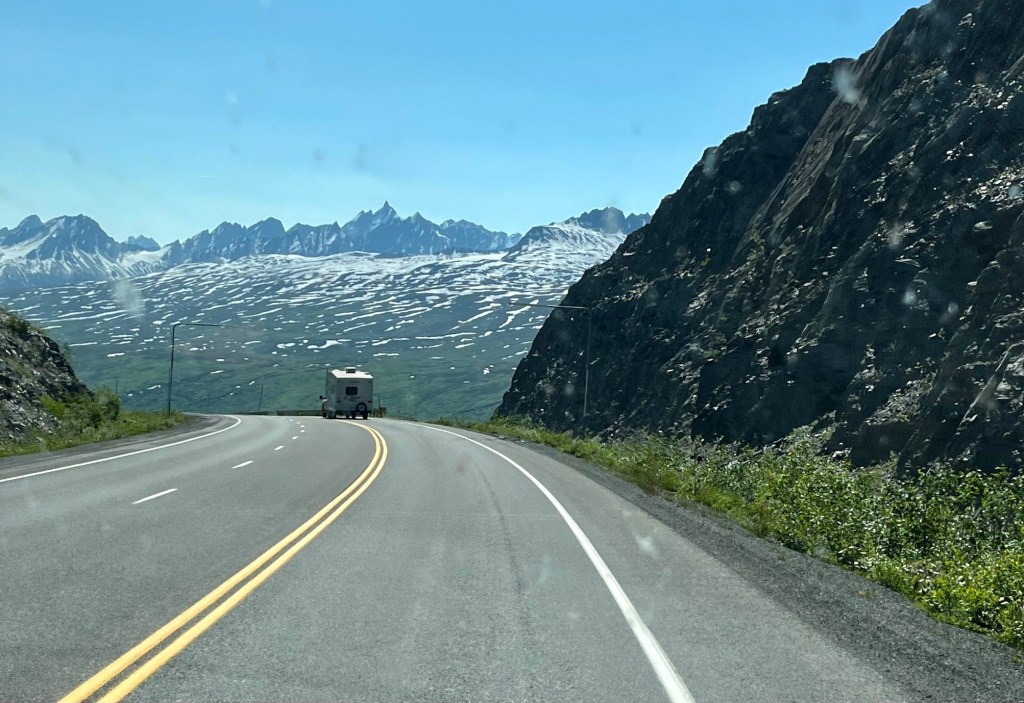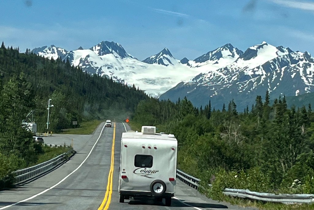 Worthington Glacier again (Dee and Cheryl towing the Cougar ahead – frequently in my photos!)