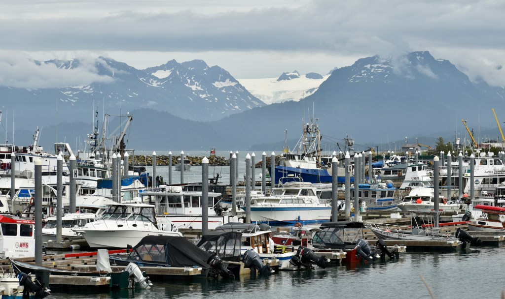 Looking south over Homer to the Kenai Mountains on the most southern part of the Kenai Peninsula.