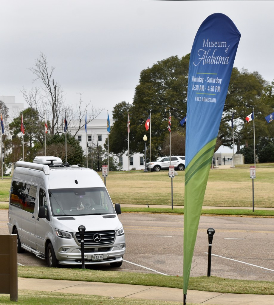 We headed south from Montgomery on Route 31 through forested and farmland countryside in southern Alabama on January 20, 2020. Our campground was Wales West RV Resort in Silverhill east of Mobile Bay. It was cold – for the first time our water hose froze. The next morning was cold and windy. We headed in to Mobile and hopped on a trolley tour of the historic areas, including old neighborhoods, two tunnels, and a drive through of the USS Alabama Battleship Park.