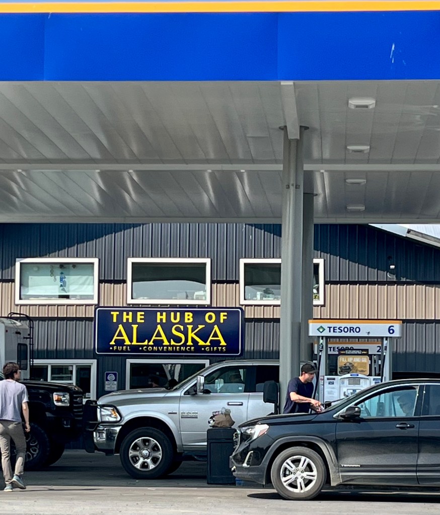 Doug and Dee spent another couple of days chasing the elusive fish in a tributary close to the Copper River. Glennallen is the junction of several main highways: Glenn Highway, Richardson Highway, and Tok Cut-Off, so calls itself the Hub of Alaska. This fuel station/visitor center/convenience store is busy 24 hours a day with lines of RV’s and big trucks.