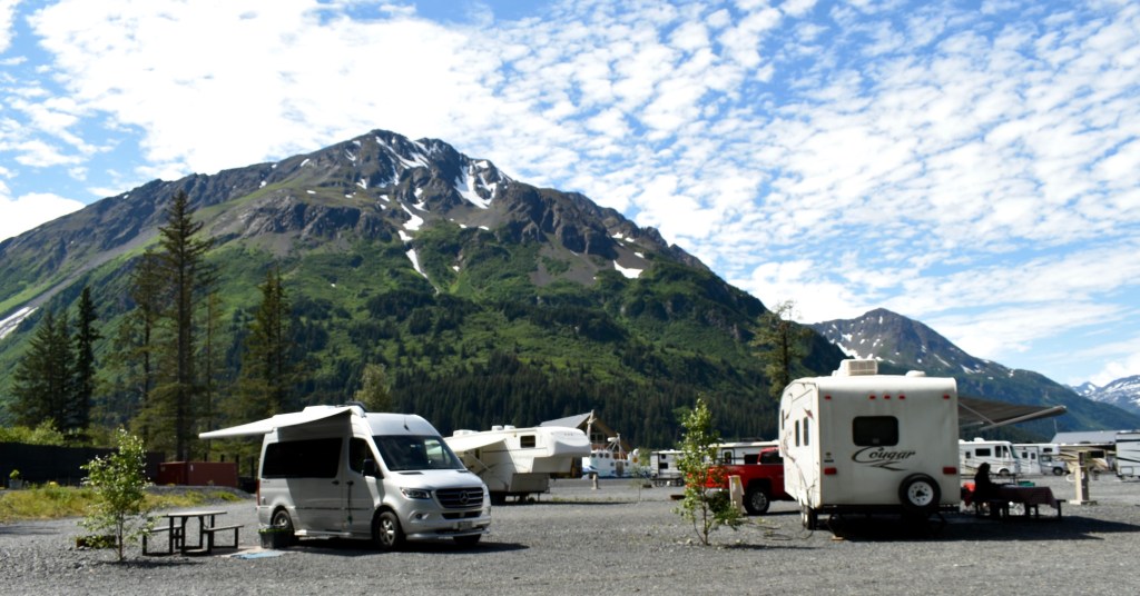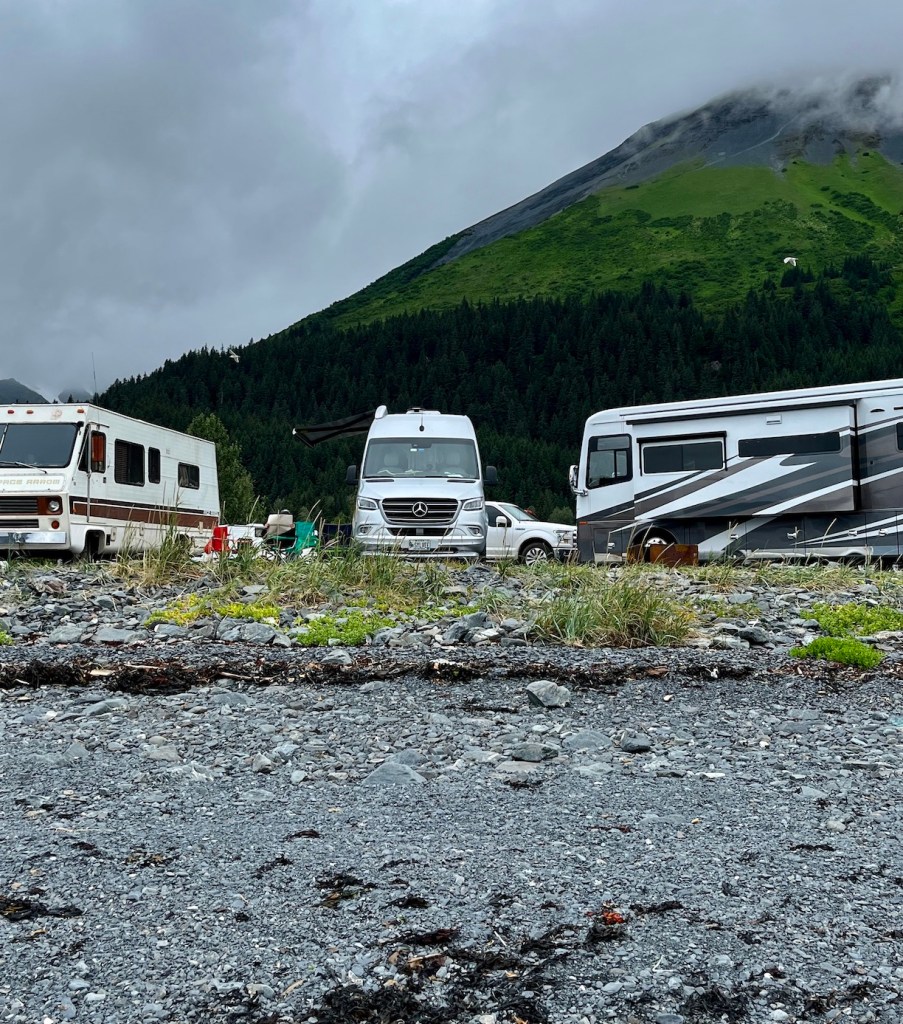 On Tuesday, July 12 we moved from the KOA to the Seward Municipal Campground at the waterfront on Resurrection Bay, a fjord. It was named in 1792 by a Russian Fur Trader and explorer who arrived there during a storm on the Russian Sunday of the Resurrection (Easter).