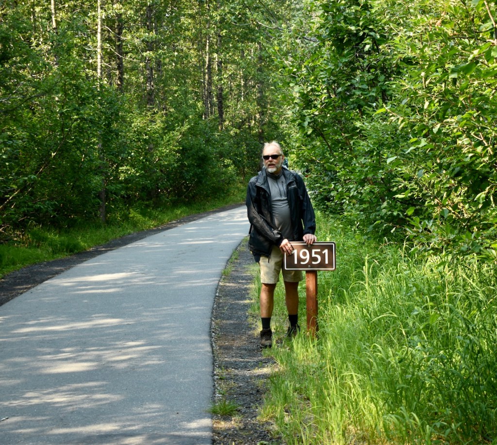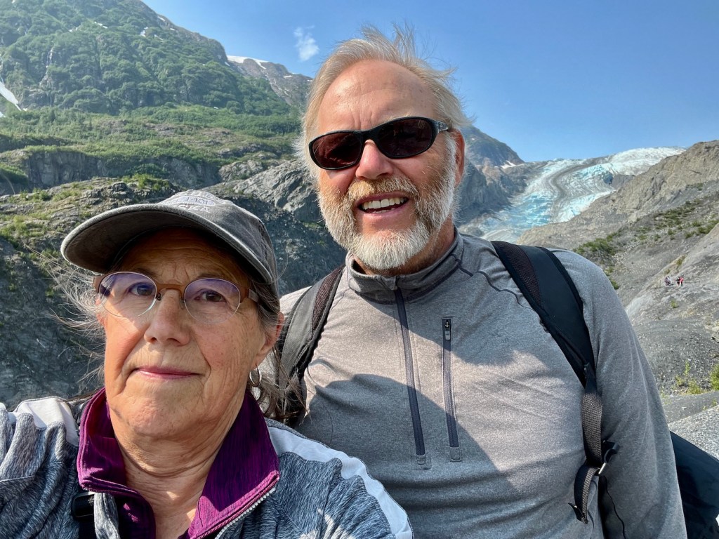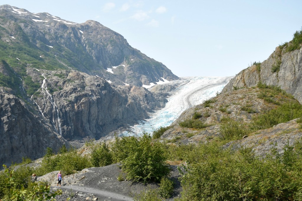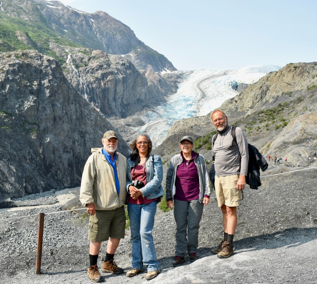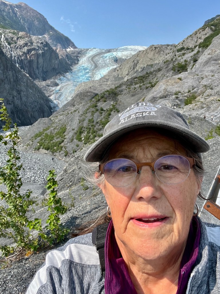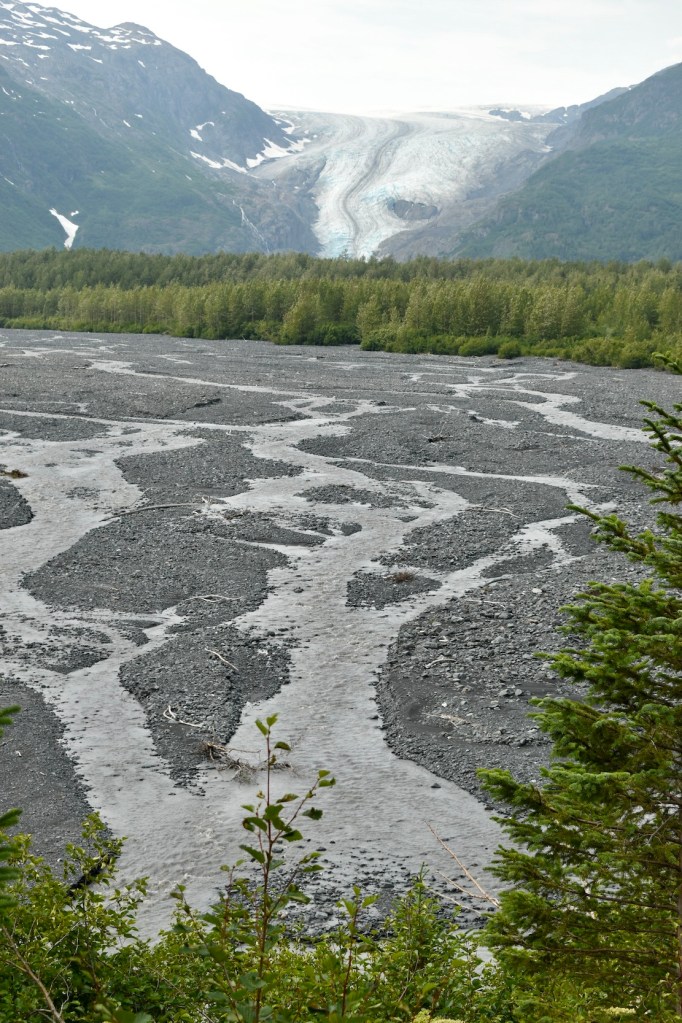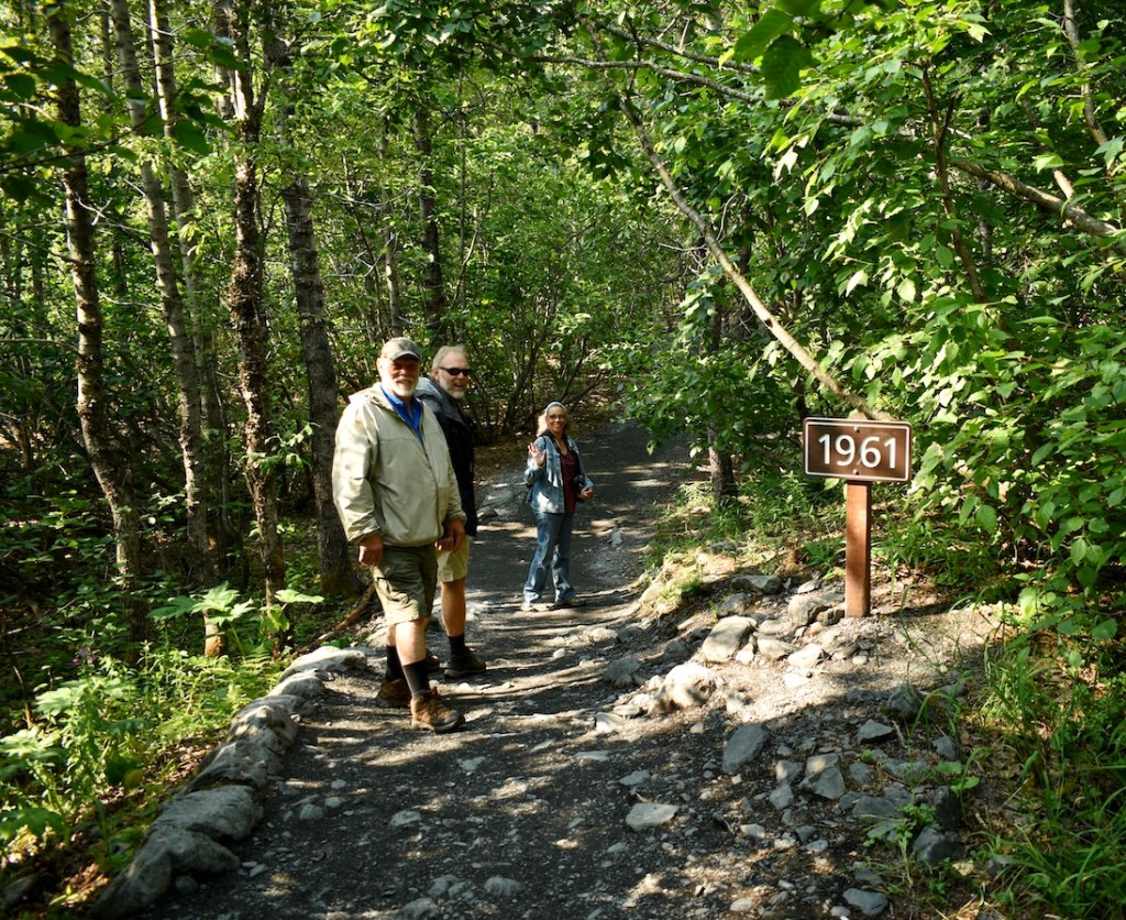 We hiked to the overlook of Exit Glacier in Kenai Fjords National Park. Along the way were signs of where the leading edge was located in various years. Dee and Cheryl were there and saw it in 2005.