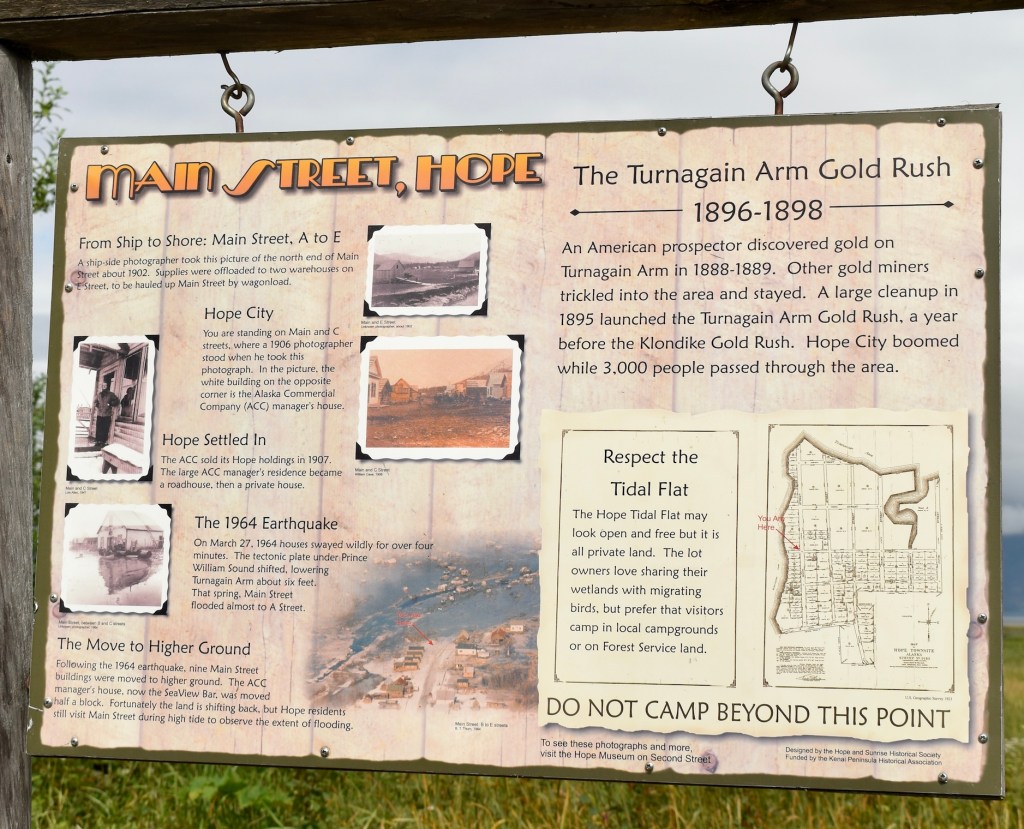Hope is a fun little town that seems stuck in time. It is located on Turnagain Arm, where the tides are second only to Fundy Bay. The bore tide was fun to watch, even though it was not particularly high. Turnagain Arm is south of Anchorage and empties into Cook Inlet.